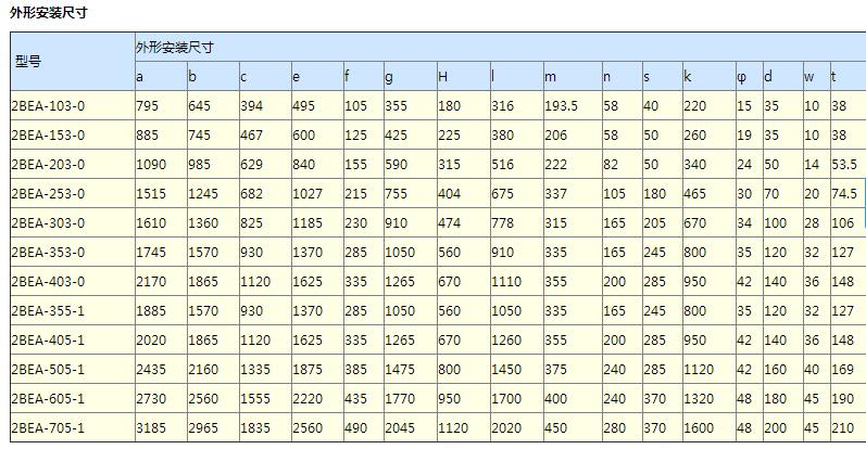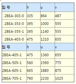 注:以上所選電機功率可在大多工況下工作。如排氣口壓力較高(0.02~0.05MPa),則應相應加大電機功率;如2BE1真空泵正工作時軸功率較小,也可選用接近軸功率的電機功率,如此更為節能。